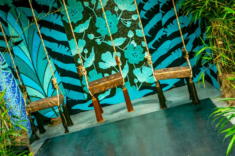 Odorose siepi di piante officinali hanno fatto da cornice a l'ambiente del Luxury Garden, all'interno del quale sono state disposte diverse postazioni per i maestri artigiani che hanno mostrato le loro preziose tecniche di lavorazione, e dove MVA ha presentato la sua capsule collection composta da dieci pezzi unici interamente realizzati in coccodrillo.