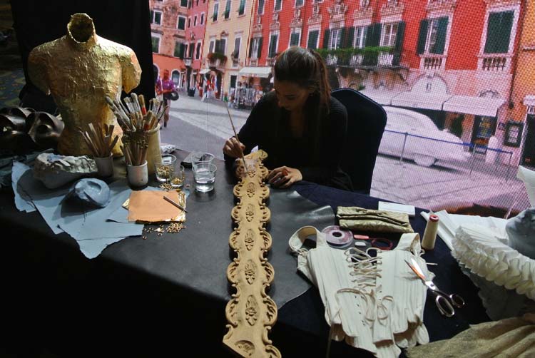 Attraverso uno strategico utilizzo di luci ed ombre, è stato adibito un percorso, full immersion nell'artigianalità italiana ed esperienza sensoriale unica.